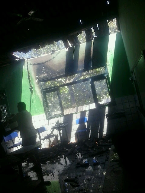 Um incêndio destruiu uma sala de aula da Escola Padre Pedro José, no final da manhã deste domingo, 27, na Rua Armando Arraes Feitosa, centro da cidade de Aiuaba.