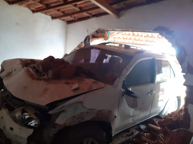 Um acidente foi registrado no início da tarde desta quinta-feira, 16, na Vila de Guaribas, Tauá. O veículo Toyota Hilux cor branca, ano 2012, placas: OIA- 8856, inscrição de Mombaça, trafegava na CE- 363, quando o motorista perdeu o controle da direção. O carro saiu da rodovia, destruiu uma pequena árvore, quebrou uma cisterna e foi parar dentro de uma residência. Segundo moradores da localidade, ninguém mora nessa casa, talvez seja a única da vila desabitada. O carro, segundo a informação de populares, era dirigido pelo homem conhecido como Cigano, que estava acompanhado de mais duas pessoas. Os três ocupantes do veículo nada sofreram, ficando do acidente os danos materiais. Acredita-se que um cochilo do motorista foi causador do acidente.